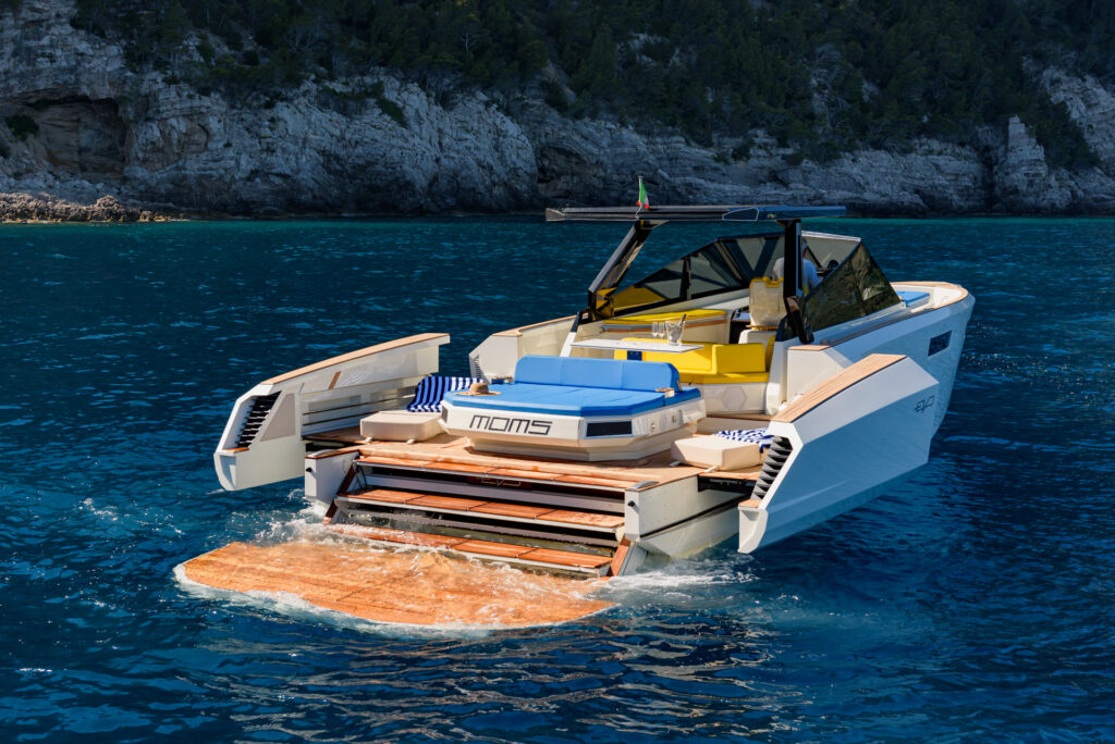 The brand new beach area is a tender lift transformer never seen before on a 40ft yacht, that creates a longer and extremely practical leisure space.