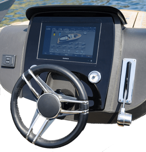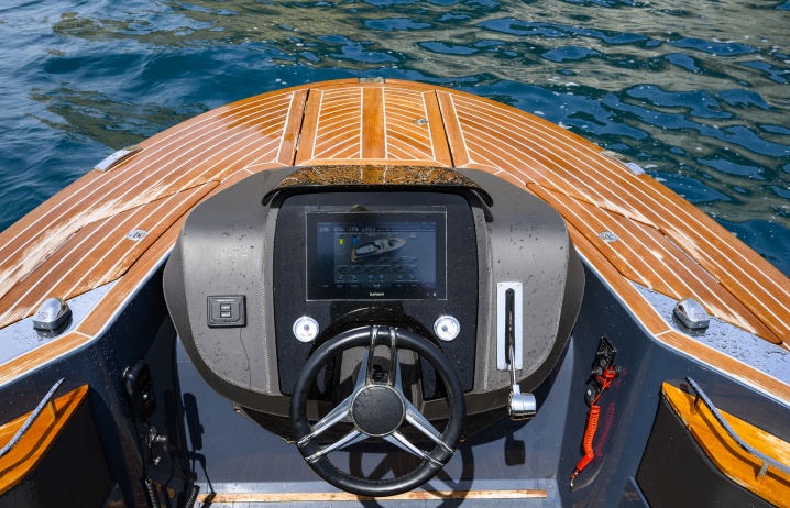 The tender has a steering console that can be raised or lowered electrically to make driving easier.