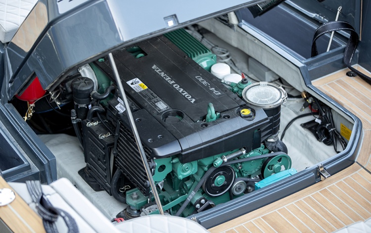 Another feature that makes Evo T2 unique and innovative in the tender segment is the fully accessible engine compartment, with generously sized front and rear hatches. The T2 has a 300 hp inboard engine coupled to a hydro jet transmission, delivering a cruising speed of 28 knots and a top speed of 36 knots.